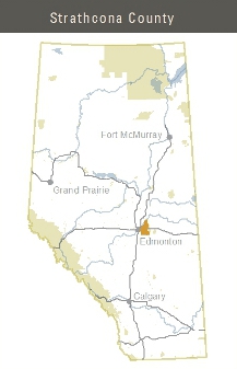 Strathcona County, immediately east of Edmonton, encompassing 1265 sq. km